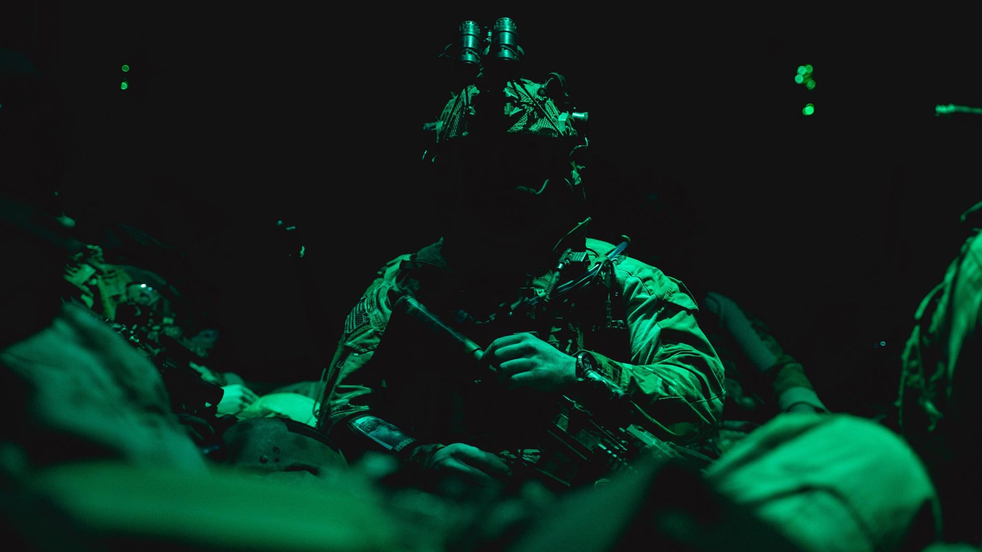 Inside of your OPERATOR helmet is a motion sensor which activates the illumination for the 'NVGs'. The IR strobe is real IR and is fully functional, it initiates with the OPERATOR 'NVGs' and can be seen through real NVGs.